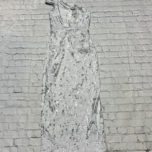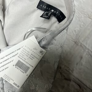 NWT Aidan Mattix Silver Metallic Evening Dress Column One Shoulder. Size 0.