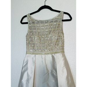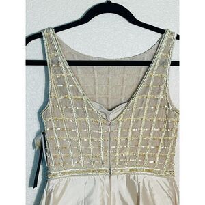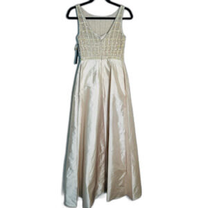 NWT Aidan Mattox Beaded Bodice Taffeta Ball Gown Gold Champagne $495 Formal Sz 0