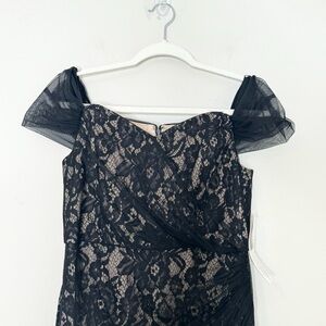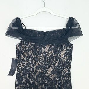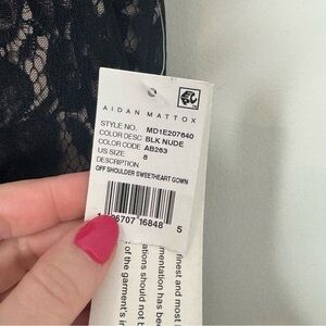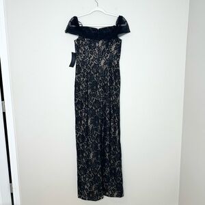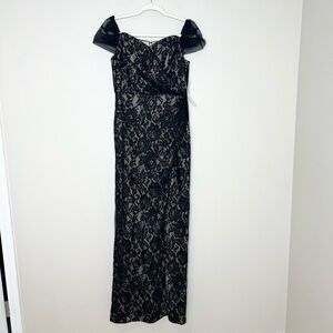 NWT Aidan Mattox Black Nude Lace Off-The-Shoulder Gown Size 8