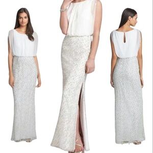 NWT Aidan Mattox Chiffon and Metallic Lace Column Gown sz 10