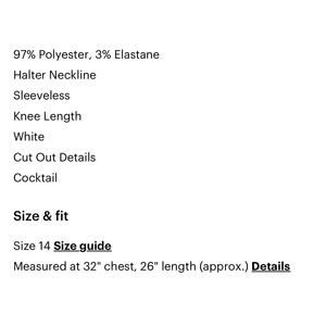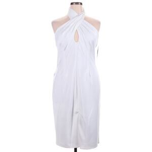 Elevate your wardrobe with this stunning Aidan Mattox cocktail dress. The halter neckline and bias cut create a flattering silhouette for any occasion. Made from a blend of polyester and elastane, this dress is both comfortable and durable. Perfect for parties or formal events, this white sheath dress is a must-have for any fashion-forward woman. Size 14 and new with tags, originally priced at $195.