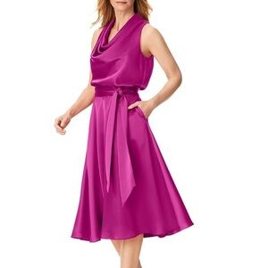 New with tags Aidan Mattox magenta purple colored satin cowl neck cocktail midi dress