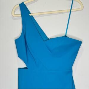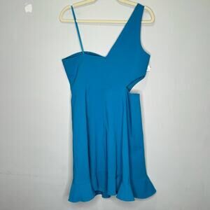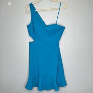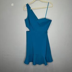 NWT Aidan Mattox One Shoulder Asymmetric Cutout A-line Mini Dress Blue Sz 8