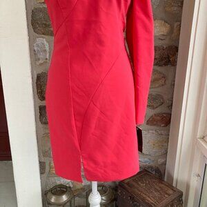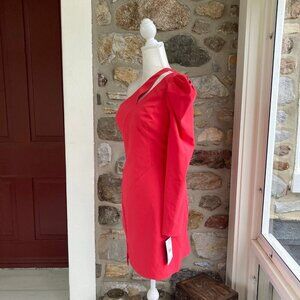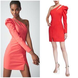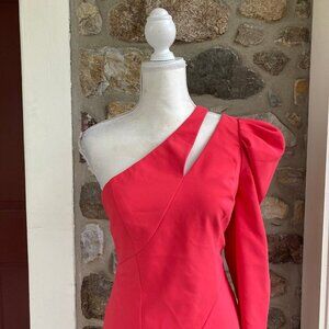 NWT Aidan Mattox One Shoulder Single Balloon Sleeve Crepe Dress Hot Tomato