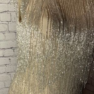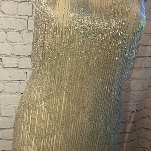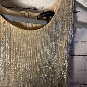 NWT Aidan Mattox Seed Bead Gold/Silver Fringe Dress, SZ 6, Fearless Era Inspired