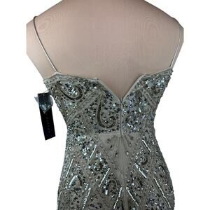 NWT Aidan Mattox Sequin Embellished V-Neck Flutter Hem Midi Dress *Altered*