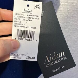 NWT Aidan Mattox Tuxedo Velvet Dress in "deep ocean". Elegant, graceful and full of romance, you're sure to fall for this smartly-tailored tuxedo gown with endless styling options. Size 0.