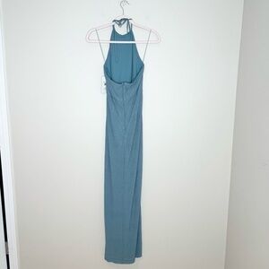 NWT Aidan by Aidan Mattox Metallic Knit Halter Gown Sage Size 2