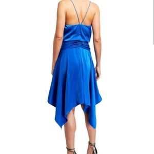 NWT Aiden Mattox Royal Blue Shirred Waist Satin Blouson Dress