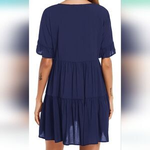 Delicate Design: Bathing suit coverups for women features with v neck, pleated design, and ruffle, loose-fitting make this swim cover up dress comfortable and simple.