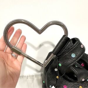 NWT Aimee Kestenberg All My Heart Black Leather Rainbow Rhinestone Carabiner Heart Handle Bag