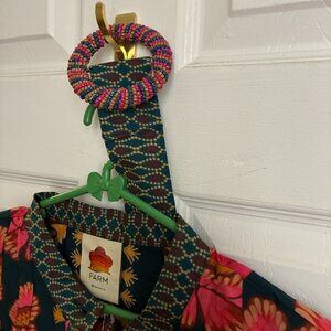 Adorable summer dress w/ belt. Ruffle hem and long poet sleeves. Please note this style is unlined, would recommend a slip underneath,