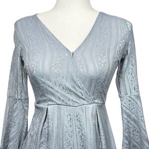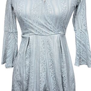 NWT Air Space Sky Blue Lace Romper Shorts Long Bell Sleeve Size Small Summer