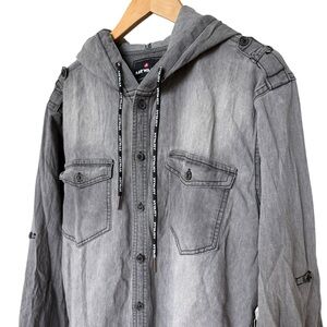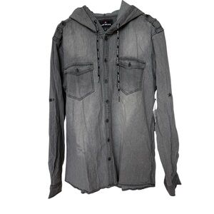 NWT! Airwalk Men's XL Black Wash Hooded Denim Shirt Long Sleeve Casual ButtonUp
