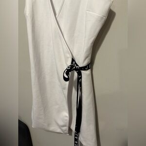 Aje Athletica Logo Tie Waist White Wrap Front Mini Dress
