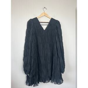 NWT Aje Evelina Ruched Blouson Sleeve V-Neckline Cotton Mini Dress Black Size: 4