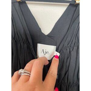 NWT Aje Evelina Ruched Blouson Sleeve V-Neckline Cotton Mini Dress Black. New with tag!