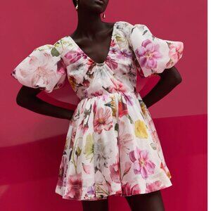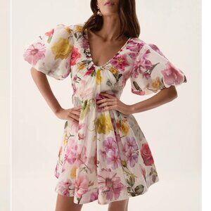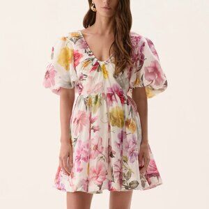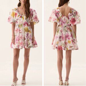 NWT Aje Fleur Mini Dress Floral Collage Floral Pink White Vacation Cocktail US6