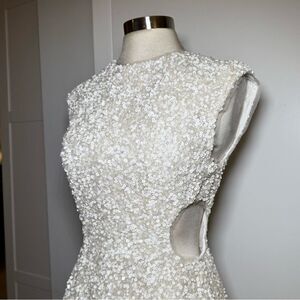 NWT Aje Mirage Beaded Mini Dress Cut Outs Sequins Ivory Cream White 8