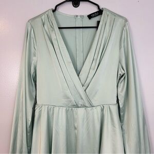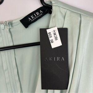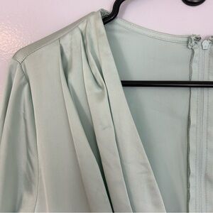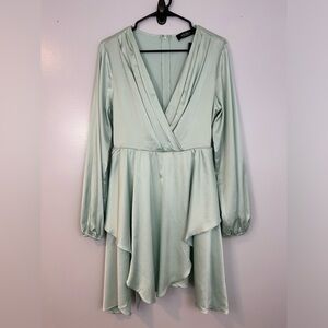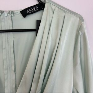 NWT Akira Satin Long sleeve Asymmetrical Pale Green V-neck Mini Dress Medium