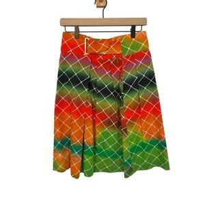 NWT Akris Punto Rainbow Skirt Bold Multicolor Net Print Statement Midi Cotton 6