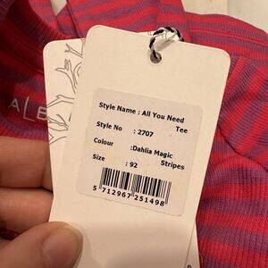 Alba of Denmark long sleeve shirt size 92 (2). The All You Need Tee in colorway Dahlia Magic Stripes is ribbed with hot pink and purple stripes. So cute and soft - love the little heart. New with tag (NWT).