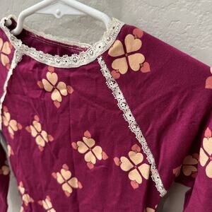 Alba of Denmark long sleeve onesie size 98 (3). The Joice bodysuit in Raspberry Radiance is burgundy pink with heart detail and lace trim. So cute and pretty! New with tag (NWT).