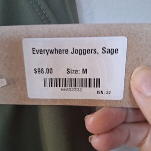 NWT Albion Womens Everywhere Joggers. Sage. Lightweight. Elastic waistband with drawstring. Front slant open pockets. Back flat pockets. Elastic hem.