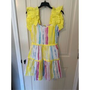 New with tags. Yellow/pink/white/blue dress. Featuring a pastel color, a ruffle sleeve and tiered design, this pull-on dress will have you looking your best. With its lightweight and comfortable feel, you'll be happy and ready to go.