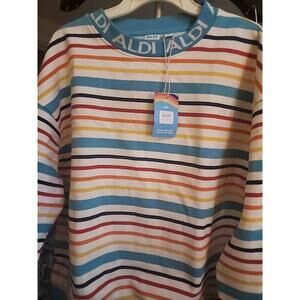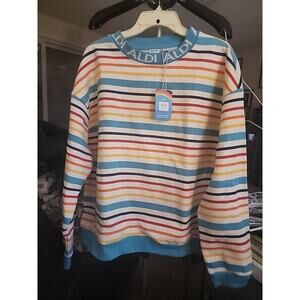 NWT Aldi Gear Ladies Womens Striped Pullover Sweatshirt Size Large Rainbow CR3