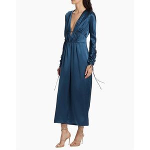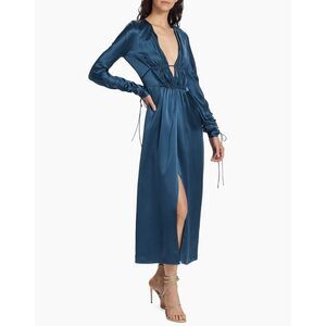 NWT Alejandra Alonso Rojas Silk Satin Midi-Dress in Navy Size 2 $1495