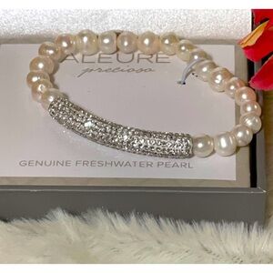 NWT Aleure Precioso Cultured Freshwater Pearl & Crystal Bar Stretch Bracelet NIB