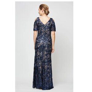 NWT Alex Evening V-Neck Sequin Dress with Cold Shoulder Flutter Sleeve