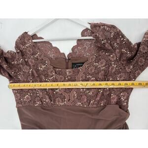 NWT Alex Evenings Dress Womens 18W Latte Brown Floral Sequin Lace Ruffles Ruched