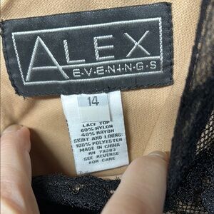 NWT Alex Evenings Elegant Black Lace Ruched Dress Women's Size 14