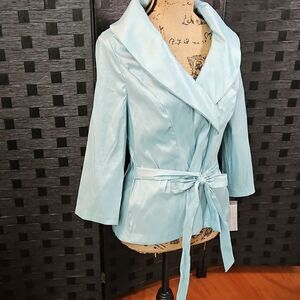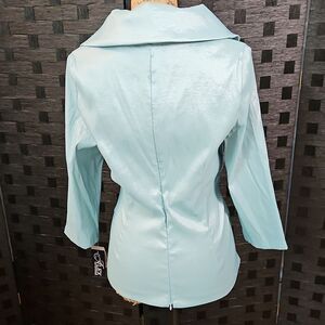 NWT Alex Evenings Iced Sage Portrait collar top with tie, 3/4 sleeves, invisible back zipper, size Large. Excellent new condition, measurements in pics, smoke free home, ships next day. Over 2,500 Poshmark Sales. Bundle and Save!