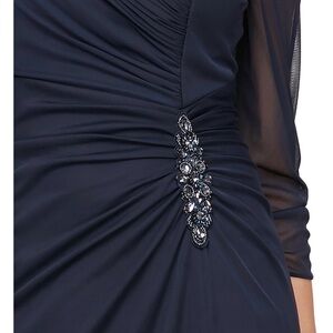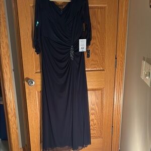 NWT Alex Evenings Navy Maxi Dress with Sheer Sleeves