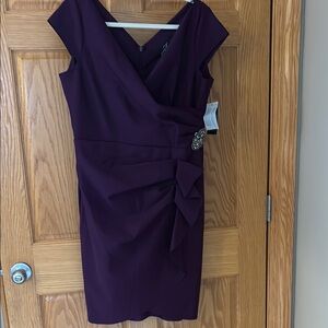 NWT Alex Evenings Plum Purple Embellished Dress 14