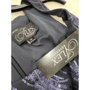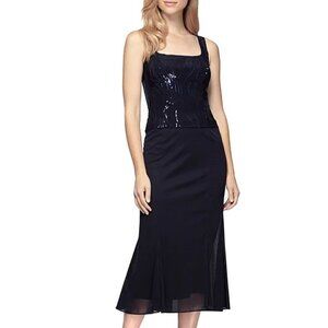 NWT Alex Evenings Size 8P Square Neck Sequin Waves Midi Dress Navy *Dress Only*