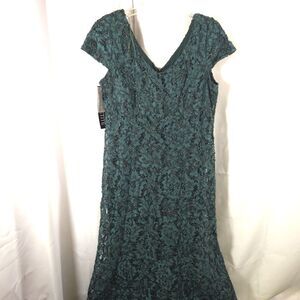 NWT Alex Evenings Womens 14P Green Long Rosette Mother of The Bride Dress