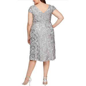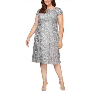 NWT Alex Evenings Womens Periwinkle Rosette Lace Sequin A Line Dress Size 22W
