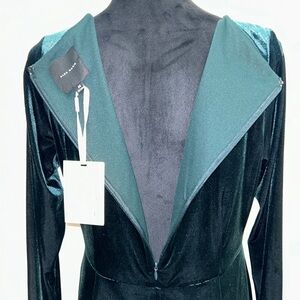 NWT Alex Marie GREEN Velvet Long Sleeve Ruched Waist SideSplit Hem Midi Dress 14