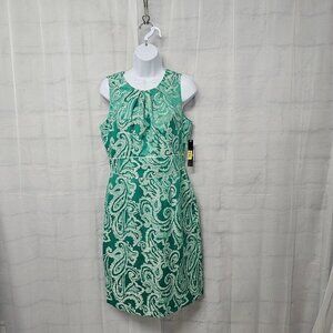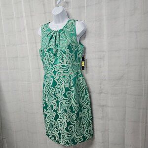 NWT Alex Marie Green Paisley Sleeveless Brocade Retro Knee Length Dress Size 6