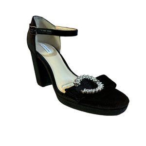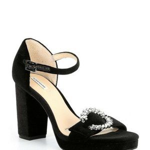 NWT Alex Marie Janessa Black Velvet Jewel Buckle Platform Dress Sandals 8
