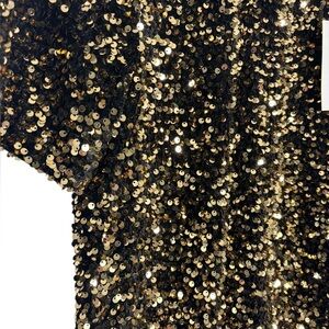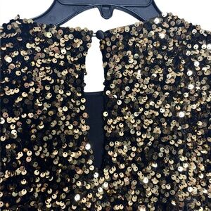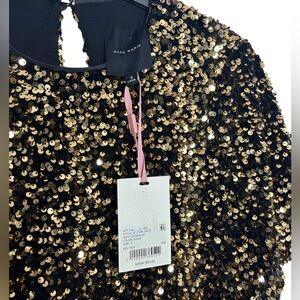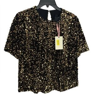 NWT Alex Marie Lia Gold Sequins Embroidered Crew Neck Short Sleeve Blouse Size S
