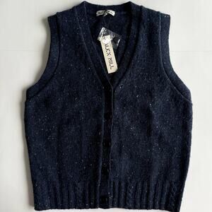 NWT Alex Mill Donegal Navy Wool Blend Cardigan Vest Medium