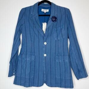 NWT Alex Mill Linen Pinstripe Boy Jacket Blazer Women's Indigo Blue Size Small