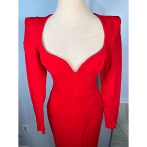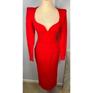 NWT Alex Perry Red Maren Stretch Crepe Sweetheart Neckline Midi Dress Size 2