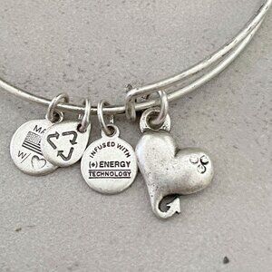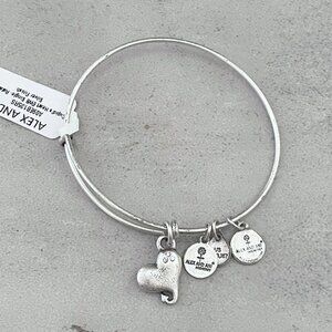 NWT Alex and Ani Cupid's Heart Silver Tone Adjustable Charm Bangle Bracelet