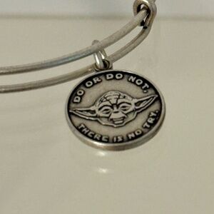 New with tags. Disney, Alex and Ani Star Wars Yoda bracelet. Silvertone metal with embossed charms. Tag attached. Has not been worn.